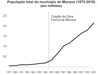 O gráfico mostra que, a partir de 1970, a população de Manaus tem um crescimento acelerado. As opções a seguir apresentam causas desse crescimento, à exceção de uma. Assinale-a.
