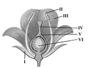 As Angiospermas são plantas vasculares, independentes da água para sua reprodução, apresentando grão de pólen, óvulos e sementes, sendo estas últimas protegidas no interior dos frutos. Os elementos relacionados com a reprodução sexuada nessas plantas encontram-se reunidos nas flores. Abaixo, temos um esquema de uma flor com as diferentes estruturas indicadas por setas numeradas.