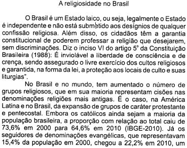 Com a Constituição da República em 1988, muita coisa mudou na vida dos brasileiros, entre elas, a mobilidade religiosa. Leia o texto a seguir:
