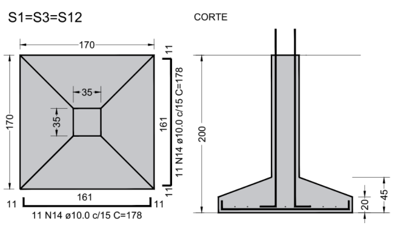 Considere o detalhamento das armaduras de 3 sapatas indicado na Figura 10.