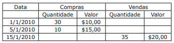 Assinale a opção que apresenta o valor do custo das mercadorias vendidas, sabendo que o método utilizado para avaliação de estoques foi o método PEPS.