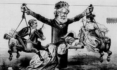 A charge acima satiriza um aspecto político importante do Segundo Reinado, a saber: