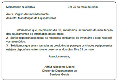 Considere o memorando mostrado abaixo.