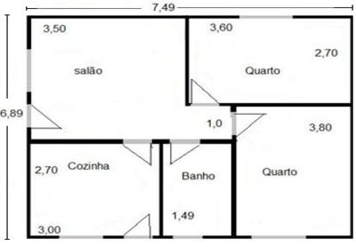 Dada a planta baixa de uma casa, determine o perímetro do retângulo maior (contorno externo) dessa casa.