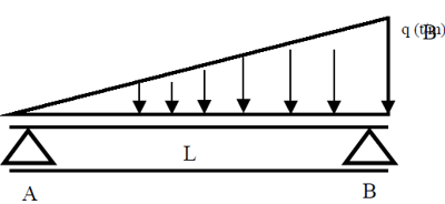 Dada a figura abaixo, representando uma carga triangular (q) sobre uma viga biapoiada, em que a distância entre os apoios A e B corresponde a L: