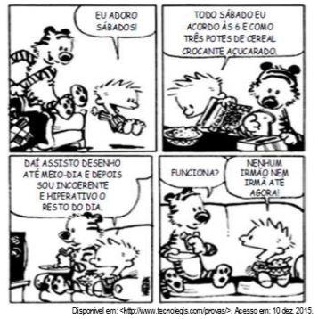 Dadas as afirmativas acerca do verbo assistir no terceiro quadrinho da tira,