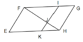 A figura abaixo, EFGH é um paralelogramo, EF = 8 cm, EH = 12 cm, FH = 10 cm, KH = 2,4 cm, e os segmentos IK e EF são paralelos. Nessas condições, podemos dizer que os segmentos HJ e JK medem, respectivamente: