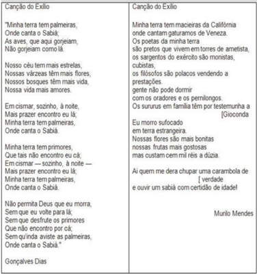 Enquanto no poema de Gonçalves Dias, diz “minha terra tem palmeiras”, retratando as belezas da terra em que vive, exaltando o próprio país, Murilo Mendes também usa essa exaltação afirmando “nossas flores são mais bonitas, nossas frutas são mais gostosas mas custam cem mil Réis a dúzia”. De acordo com essa citação é correto afirmar que a intenção do poeta foi: