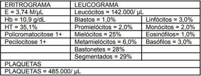 JHS, 38 anos, sexo feminino, apresenta astenia, emagrecimento e esplenomegalia. O resultado do hemograma dessa paciente está transcrito abaixo: