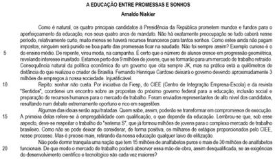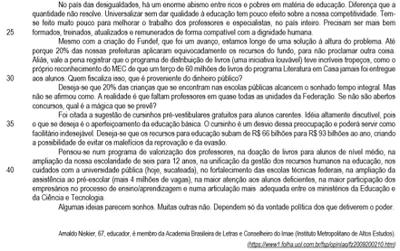 Leia o texto abaixo do educador e intelectual Arnaldo Niskier e responda à questão abaixo.