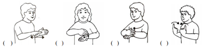 (4) CM: mãos abertas palma a palma; PA: à frente; M: girar o pulso; O: para os lados opostos; EF/C: sobrancelhas arqueadas