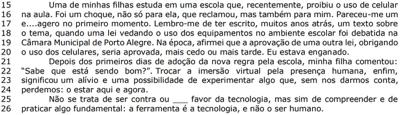 Assinale a alternativa que indica a correta função sintática do termo sublinhado no trecho a seguir, retirado do texto: “não pode – e não deve – se basear na lógica da disputa pela atenção aplicada por milhões de aplicativos e pelas redes sociais”.