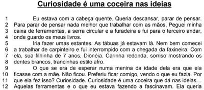 “Curiosidade é uma coceira que dá nas ideias” (linha 11).