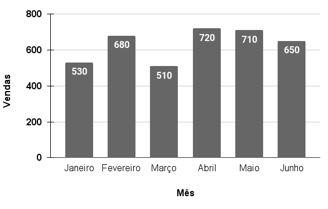 Observe o seguinte gráfico de barras que mostra a quantidade de itens vendidos numa empresa por mês: