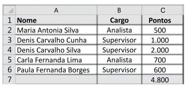 Assinale a alternativa que contém a fórmula que, quando inserida na célula C7, resulta no mesmo valor apresentado nela atualmente.