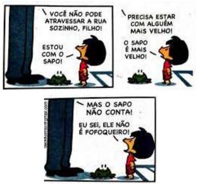 Polissemia diz respeito ao fato de que as palavras podem apresentar mais de um sentido, como se observa na seguinte tirinha: