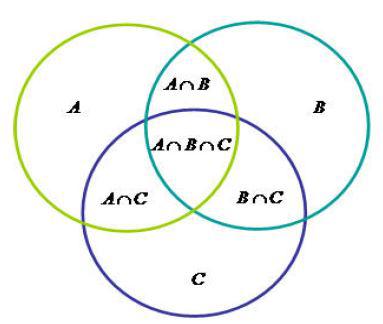 #A + #B + #C – #(A∩B) – #(A∩C) - #(B∩C) + #(A∩B∩C).