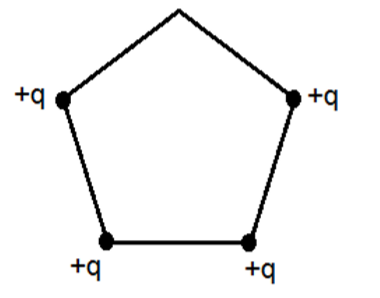 Quatro cargas estão dispostas nos vértices de um pentágono regular, como mostra a figura.