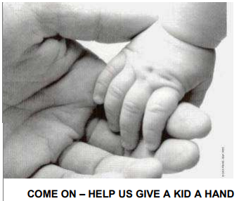 The first five years of a child's life are critical, the experts tell us. That's when their characters are formed. That's when caring counts. Someone to show them how to do things. Someone just to hold them. Unfortunately, for many of the world's children, that's just what they don't get. And society suffers as a result, because a deprived child has a lot less chance of growing up an adjusted adult. Some of us believe we can change things- or at least try. And we need your help. No, don't reach for your pocket. It's not your money — it's you we want. In your community there are dozens of ways you can make personal contact with kids and make a difference to their lives. Maybe you'll help one to read, to play a game, to learn to laugh. Maybe you'll just be the hand that holds out a little hope...