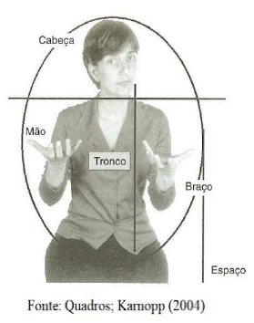 Segundo Quadros e Karnopp (2004), o Ponto de Articulação ou a Locação é a área no corpo ou no espaço de articulação definido pelo corpo em que ou perto da qual o sinal é articulado, conforme ilustrado na imagem a seguir.