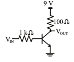 , foi injetado um sinal TTL, ou seja, com valor de pico de 5 V e que esse transistor apresenta uma tensão de polarização direta na junção base-emissor de 0,7 V e uma tensão de saturação na junção coletor-emissor de 0,4 V, considere as afirmativas a seguir.