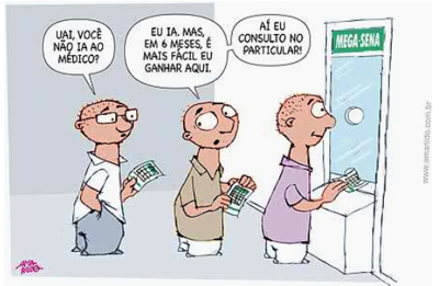 Fato de que é preciso ganhar na Mega-Sena para conseguir pagar um médico particular.