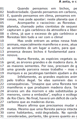 Texto especialmente adaptado para esta prova. Disponível em http://chc.org.br/a-anta-o-carbono-oclima/.