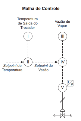 A figura acima apresenta o diagrama de um trocador de calor e sua correspondente malha de controle de temperatura. A associação correta entre os números dos instrumentos indicados na malha de controle e as letras da lista de identificação funcional, segundo a Norma ISA S 5.1, é: