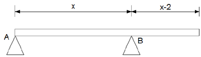 Se as reações nos apoios A e B são, respectivamente, iguais a 16 N e 64 N, então a distância x que separa os dois apoios é de: