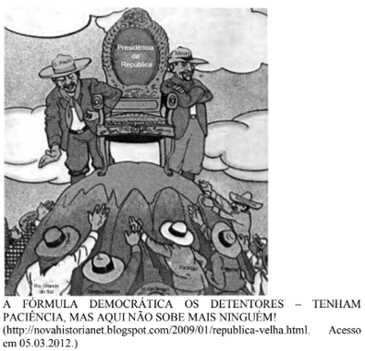 A charge abaixo do ilustrador gaucho Storni, publicada em 1925, é uma crítica referente a política exercida na República Velha (1889-1930).