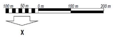 A escala gráfica é utilizada para facilitar a leitura de um mapa, consistindo-se em um segmento de reta dividido de modo a mostrar, graficamente, a relação entre as dimensões de um objeto no desenho e no terreno. Quando se divide essa escala gráfica em intervalos menores, conforme indicado pela letra “X” da seguinte imagem, tem-se o que se denomina