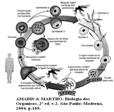 O esquema abaixo representa o ciclo de vida do protozoário Plasmodium vivax, causador de uma forma de malária humana. Após análise criteriosa, marque a alternativa correta.