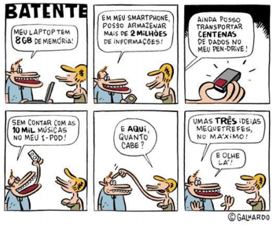 II. O verbo “poder”, no segundo quadrinho, indica que o Smartphone do personagem armazena até 2 milhões de informações.