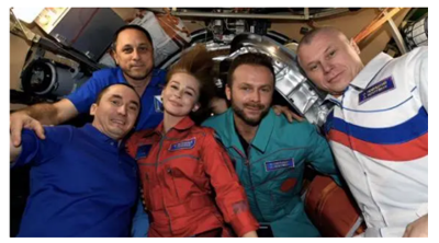 “Ao longo de 12 dias, eles filmaram seu filme, “Desafio”, o primeiro longa-metragem rodado no espaço.