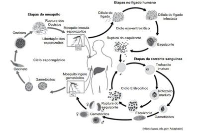 O ciclo de vida do protozoário parasita é caracterizado pela presença de dois hospedeiros e pela reprodução assexuada e sexuada do parasita.