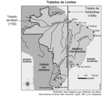 Ao se observar o mapa em que estão representados os limites territoriais da colônia portuguesa na América, então estabelecidos pelos Tratados de Tordesilhas, em 1494, e de Madri, em 1750, pode-se notar como o desenvolvimento de algumas atividades econômicas foram fundamentais para a ampliação do território brasileiro, até se chegar à nossa quase configuração atual.