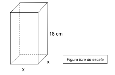 Um prisma reto de base quadrada tem 18 cm de altura conforme mostra a figura.
