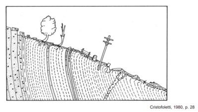 Os processos morfogenéticos são responsáveis pela esculturação das formas do relevo, ressaltando-se os movimentos do regolito que promovem o movimento de partículas encosta abaixo. Dentre os movimentos do regolito destaca-se o processo de rastejamento, creep ou reptação, o qual corresponde ao: