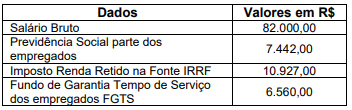 O quadro de empregados da empresa ABC Ltda, optante pelo SIMPLES Nacional é composto por 12 pessoas. Os dados da folha de pagamentos estão no quadro a seguir: