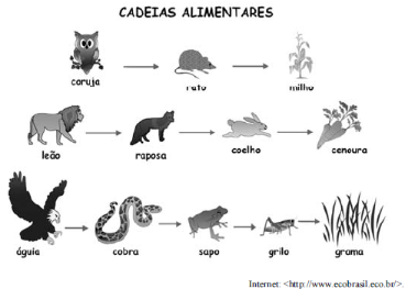 No que se refere a cadeias alimentares e a transferência de energia entre os níveis tróficos, assinale a opção correta, considerando as cadeias alimentares apresentadas na figura precedente.