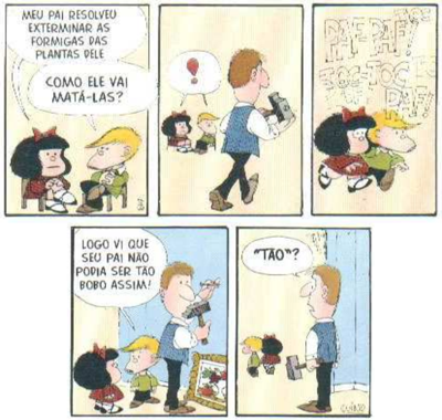 Na tirinha de Mafalda, o termo “tão”, no 4º balão, exerce a função sintática de