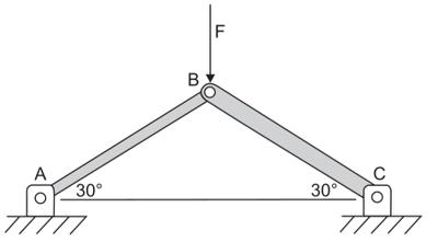 Se a área da seção transversal da barra AB é de 1,0 cm², e a da barra BC é de 2,0 cm², a força F máxima, em kN, que pode ser aplicada à estrutura é de