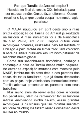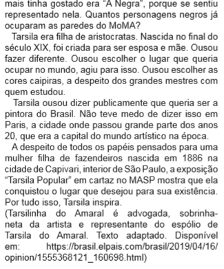 III- Tarsila do Amaral inspira por ter optado em seguir suas ideias sociais próprias.